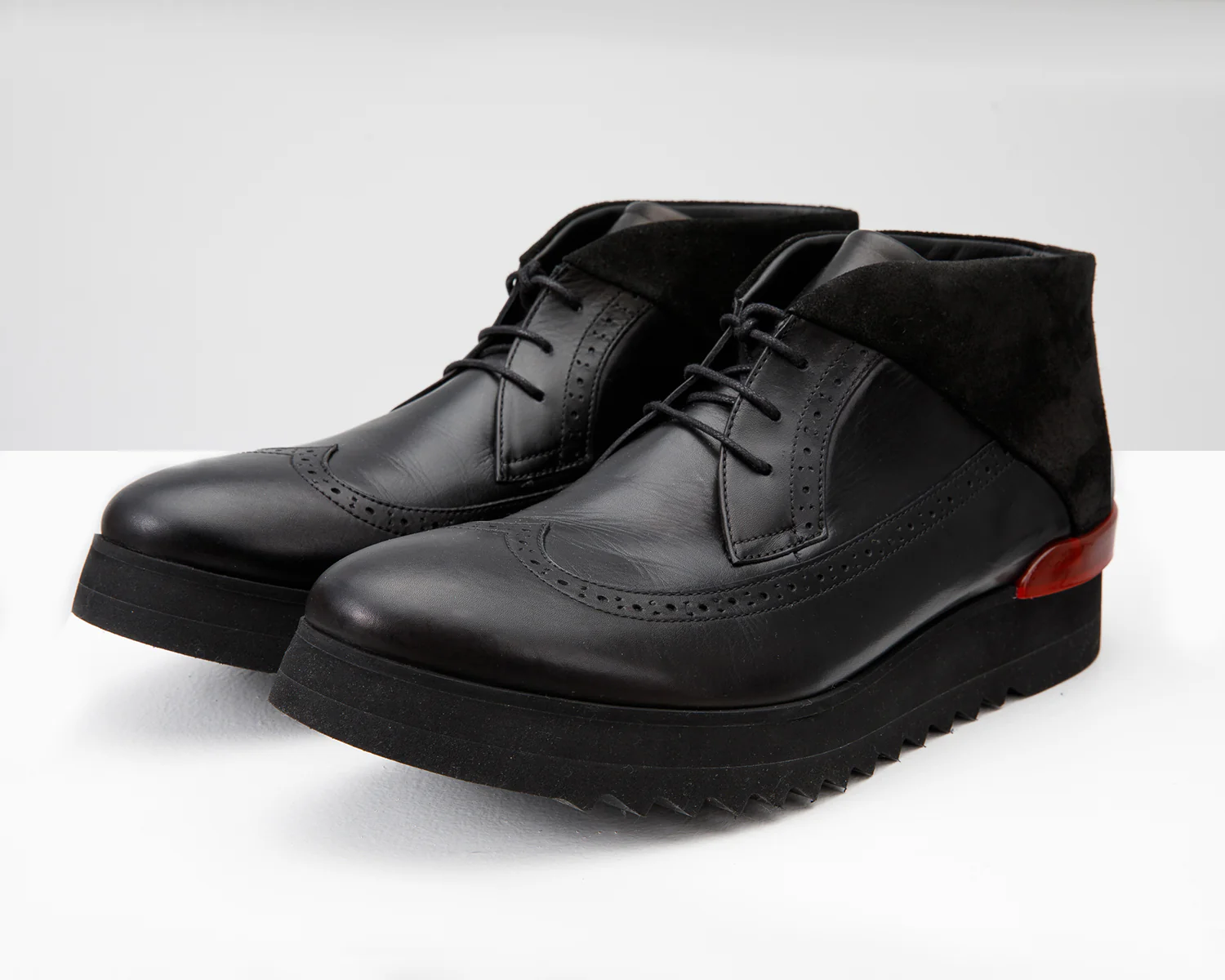 - Enhance your ensemble by pairing the Kagan Black Wingtip Chukka Men Sneaker Boot with the exclusive Bogota Black Belt, available separately. This coordinated combination adds an extra layer of style and sophistication to your overall look.