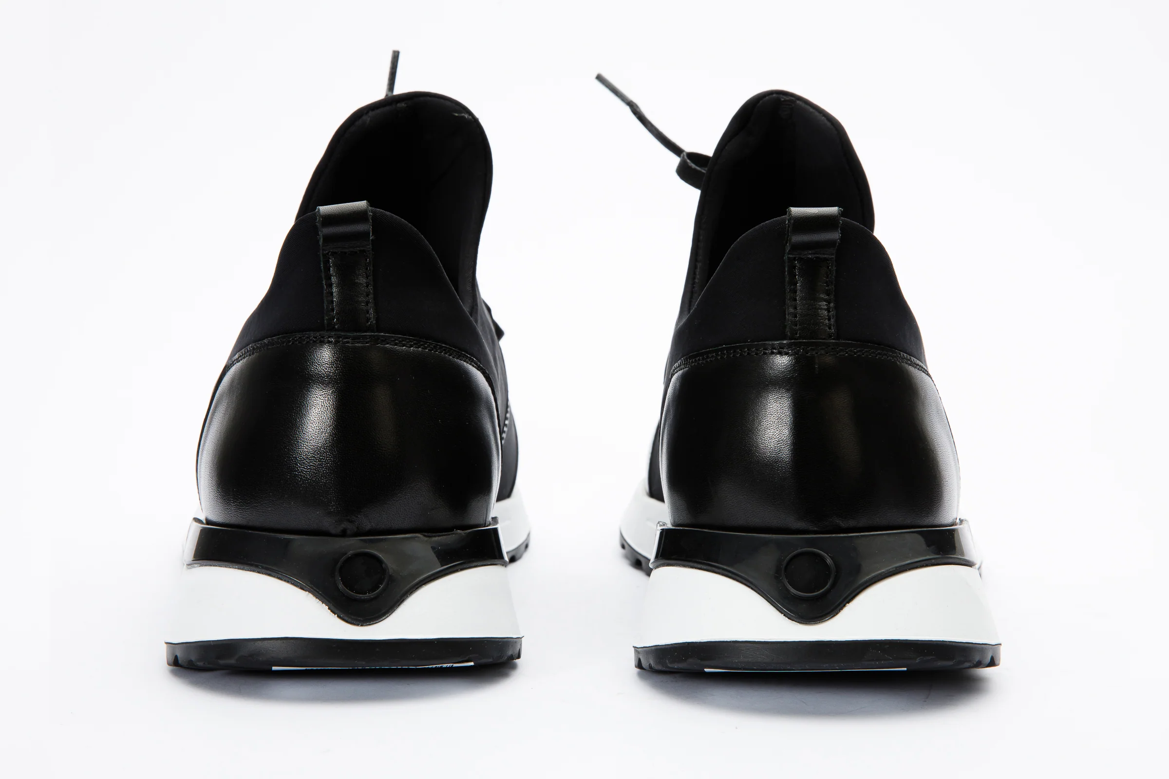 Flexible Black Fabric and Premium Calf Leather: Crafted with an innovative blend of flexible black fabric and high-quality calf leather, this sneaker embodies a perfect harmony of comfort and sophistication. Meticulously handcrafted to ensure a refined finish.